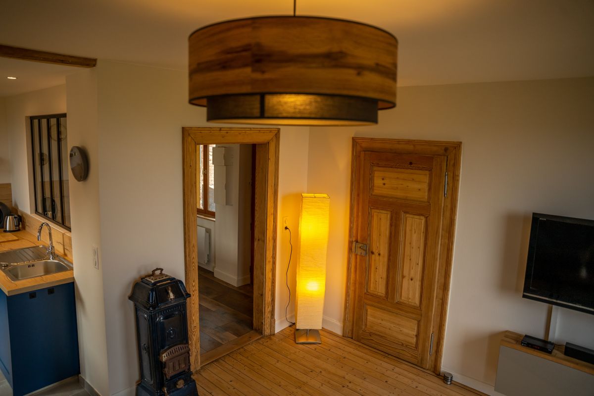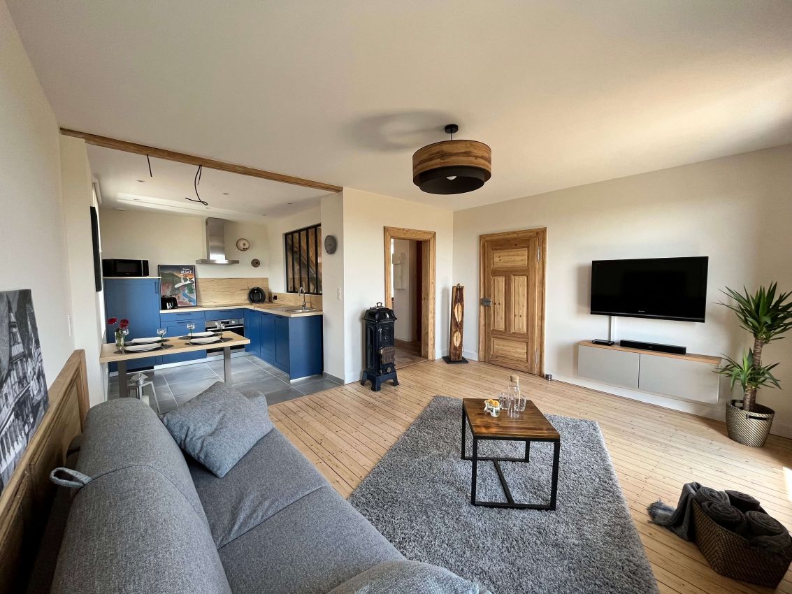 Built on the foundations of an old stable, this accommodation has retained all its charm with its old floor completely restored Le Tout embellished by a kitchen open to the living room and a modern bathroom with a large walk-in shower.